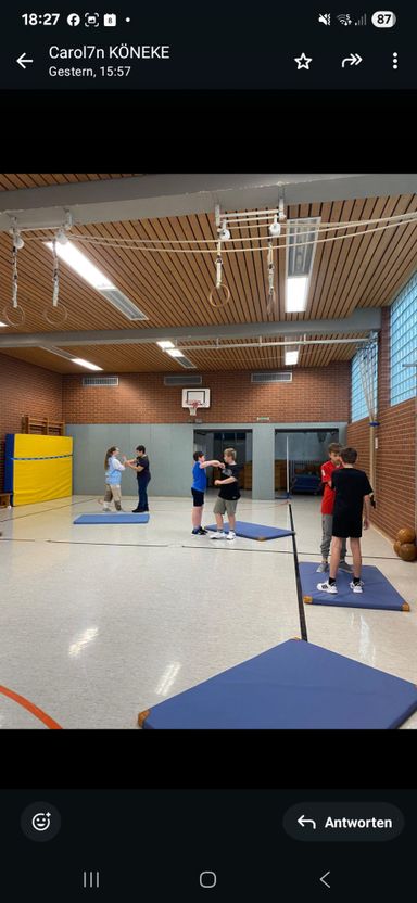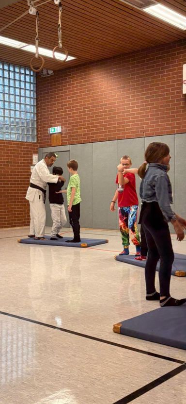Im Rahmen einer Kooperation mit der Volkshochschule fand an unserer Schule ein Selbstverteidigungskurs für die Schülerinnen und Schüler der Klassen 5 und 6 statt. An jeweils zwei Tagen lernten die Kinder, selbstbewusst aufzutreten, laut und deutlich zu sprechen und klar zu zeigen, wenn sie etwas nicht möchten. Außerdem übten sie verschiedene Befreiungsgriffe und Techniken, um sich in Gefahrensituationen schützen zu können. Ein wichtiger Bestandteil war auch das richtige Verhalten in Notlagen – etwa laut um Hilfe zu rufen oder an Türen zu klingeln. Der Kurs stärkte das Selbstvertrauen und vermittelte wichtige Strategien für mehr Sicherheit im Alltag.