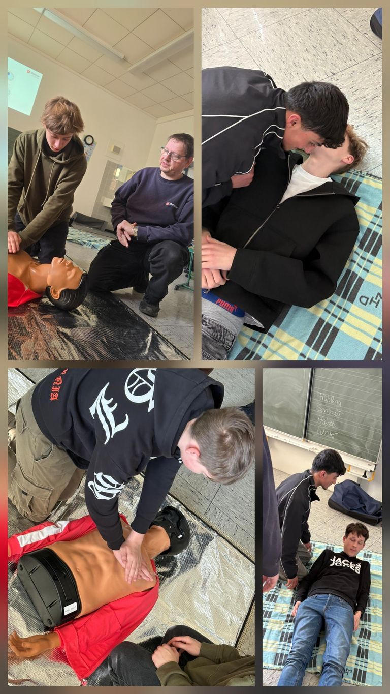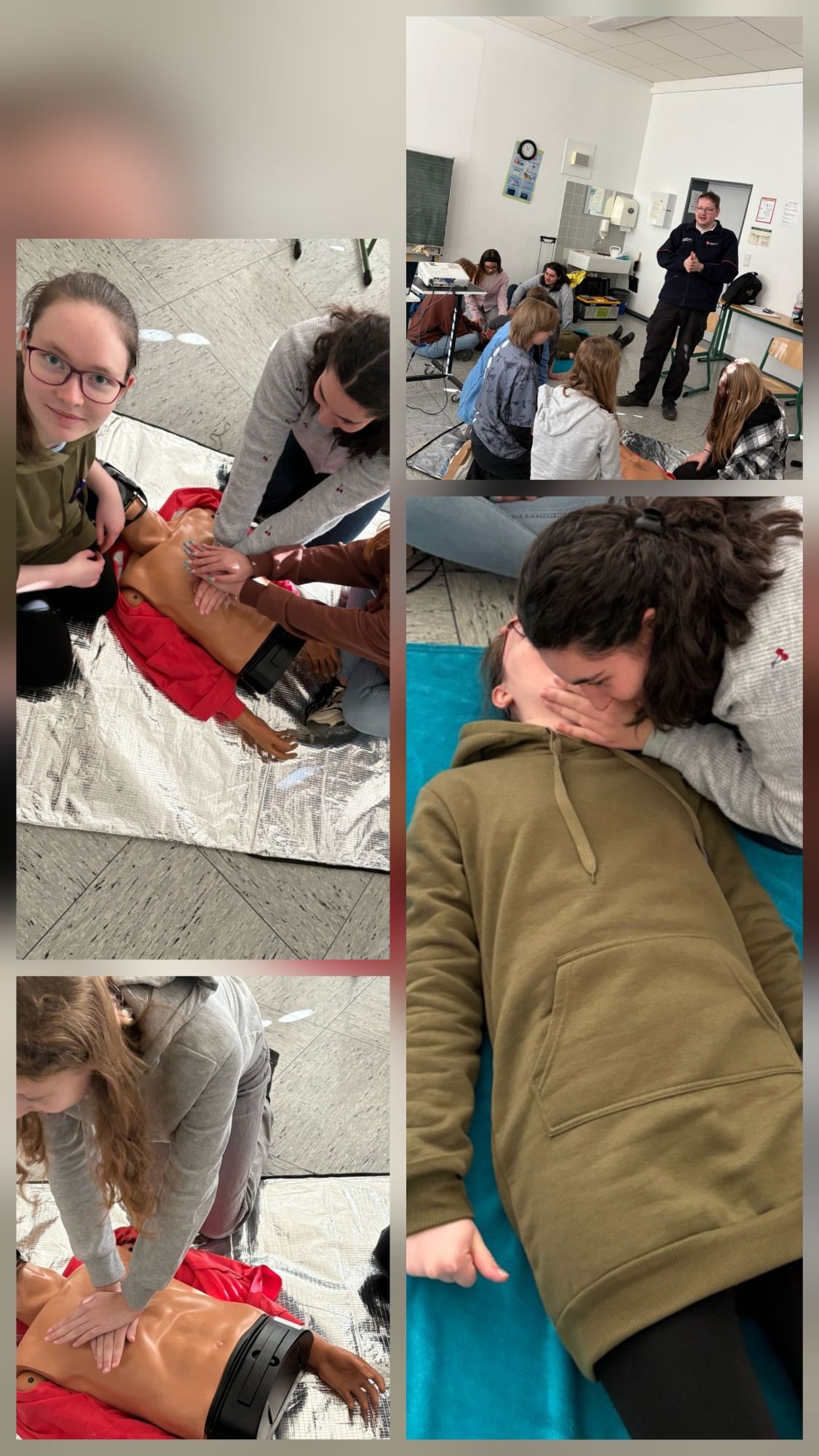 Die Neunt- und Zehntklässler der Grimmeschule haben einen Erste-Hilfe-Kurs gemacht. Sie haben gelernt, wie man im Notfall helfen kann – zum Beispiel die stabile Seitenlage und die Wiederbelebung.